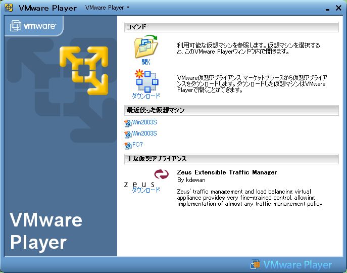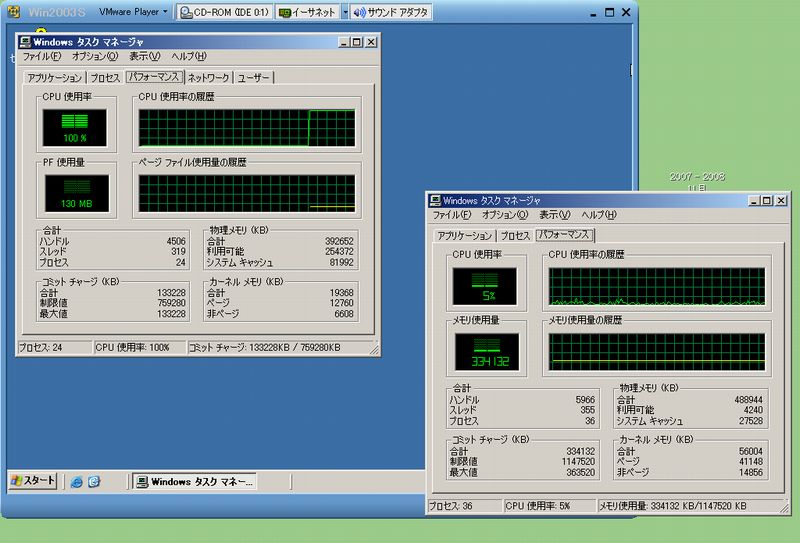 半年くらいまえに入れたVMWarePlayerと数ヶ月前にそこに入れたWin2003Serverを久しぶりに動かしてみた